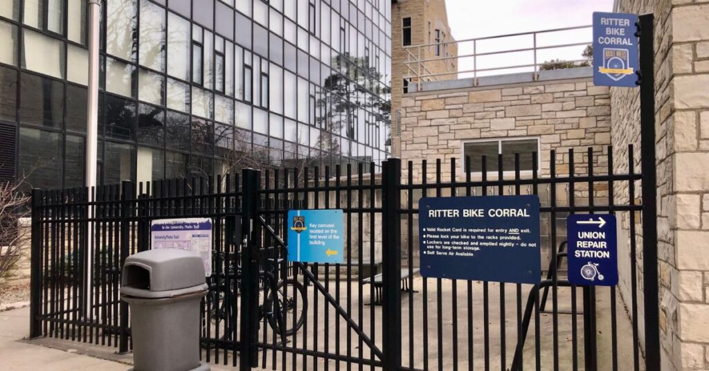 Want to ride your bike to campus? UToledo has several bike corrals installed throughout campus so you can lock up your bike securely while on campus. The corrals are enclosed, have camera monitoring and are accessible only by Rocket ID card. You can also maintain your bike with the free air pump.