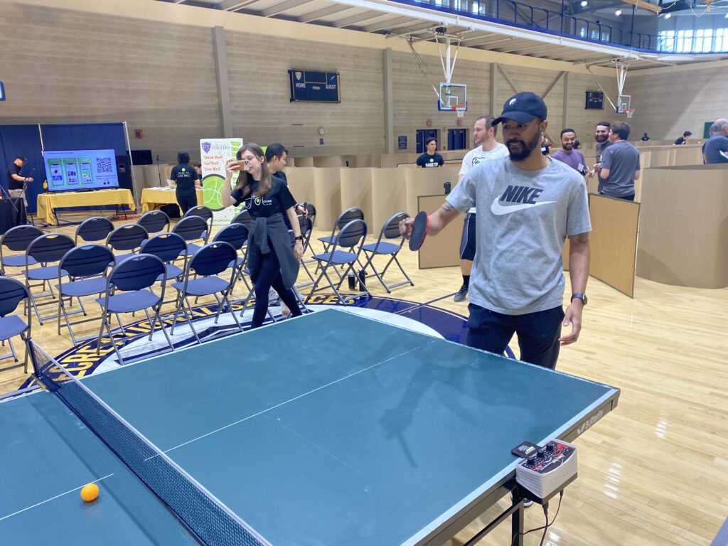 With over 18 teams and 50 players participating, the tournament was a resounding success, transforming three basketball courts into an epic tournament area, complete with a Robo-Pong, upbeat music and an awards stage.