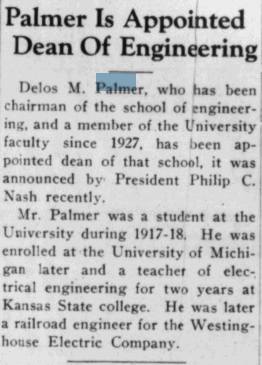 Right: The appointing of Palmer to dean of engineering, published in the Campus