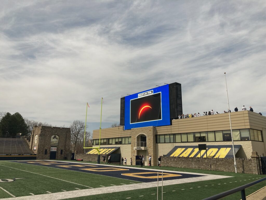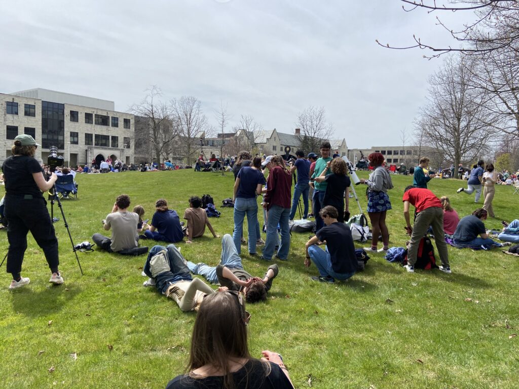 The event drew a diverse crowd of students, faculty and community members, all eager to witness this extraordinary spectacle together. Emma Allen, a student who attended the event, described the atmosphere: “I had never seen Centennial Mall so crowded before, and there were a lot of families there, besides students … Some people were in chairs or sitting on picnic blankets and most people had eclipse glasses on.”
