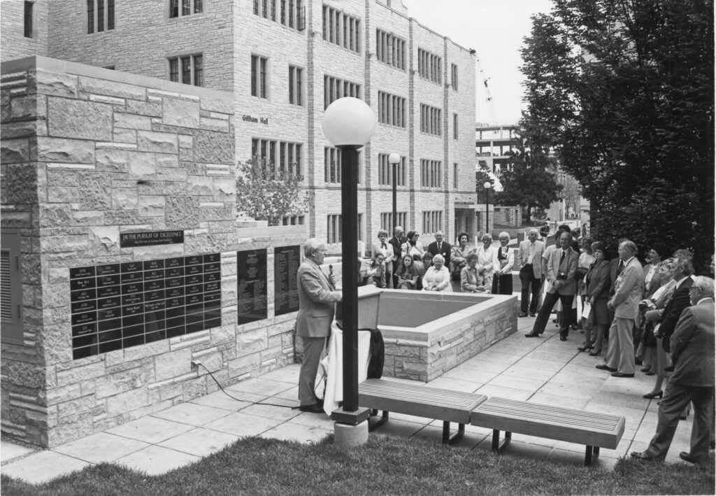 Have you ever been curious about the waterfall that’s east of University Hall? Today’s #rocketblastfromthepast 🚀 will tell you all about it! The idea for the waterfall began in 1985 as a means to inspire students to strive for high academic achievement and to commemorate the 35 honor societies at the University of Toledo at the time. Fittingly, it was named the “Pursuit of Excellence”.